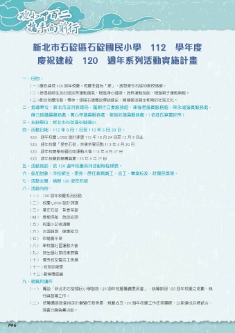 ( 一 ) 慶祝建校 120 週年校慶。校慶主題為「愛」,激發愛在石碇的愛校情懷。