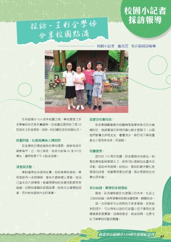 事,另外她也擅長作文和演講。 最後,彩金學姊對於石碇國小的未來,也送上