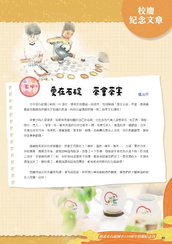 今年是石碇國小創校 120 週年,學校於校慶前一個週末,特別舉辦「愛在石碇」茶宴,邀請貴