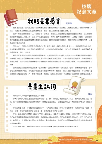 我要感謝全校師長們對自己無微不至的照顧,也要請她們放心,我之後到了國中,會繼續努力學習,當一