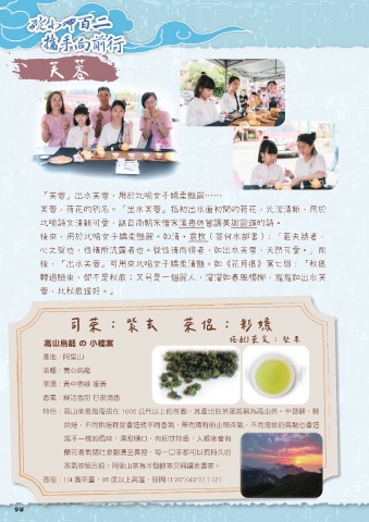 香氣停留舌根。阿里山茶為半發酵茶又稱鑲金邊茶。
